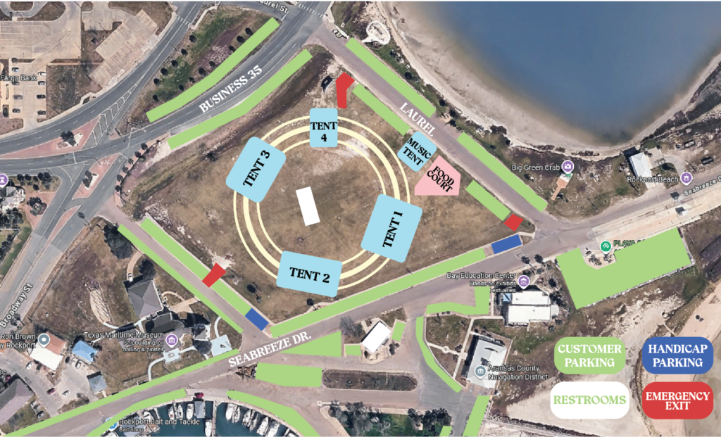 Parking is available on and around the market grounds, but a few things are very important to keep everyone safe and traffic flowing. There is additional parking down the streets on Seabreeze Dr. & Business 35
